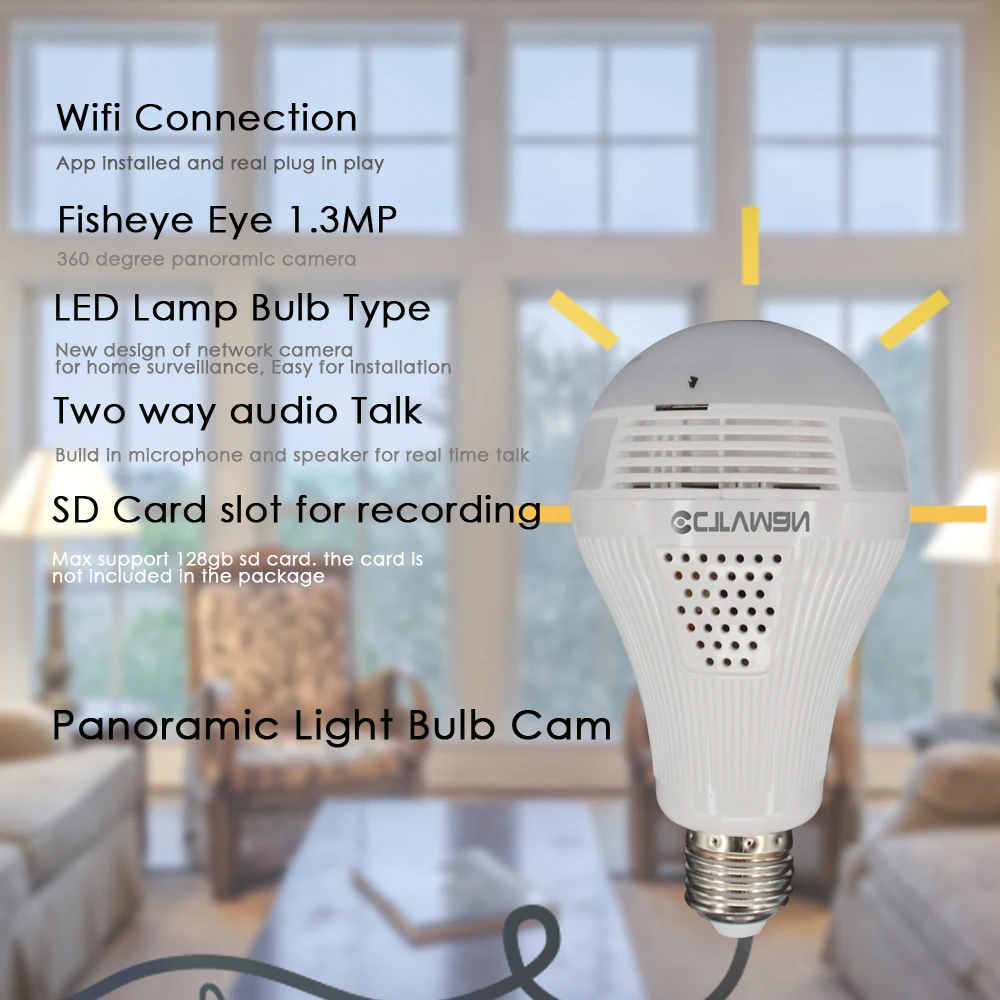 BEST QUALITY CTVMAN 360 Degree Fisheye Panoramic IP Camera Wi-fi with 32GB TF Card HD 960P E27 Light Bulb Camera