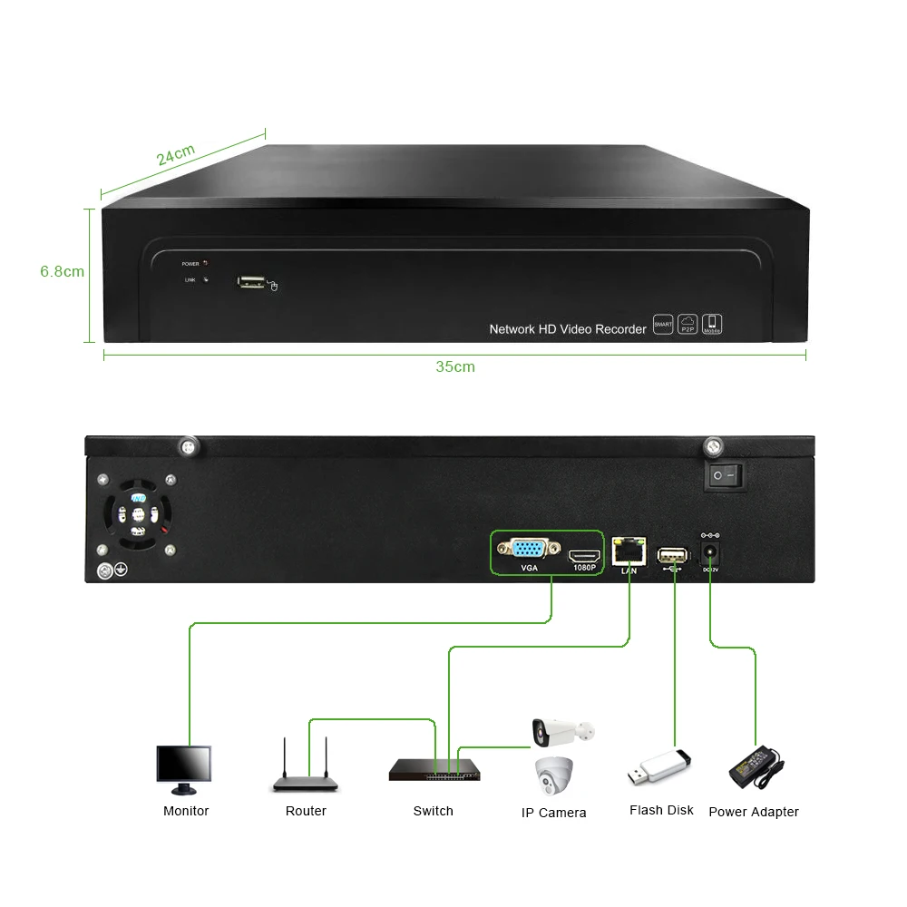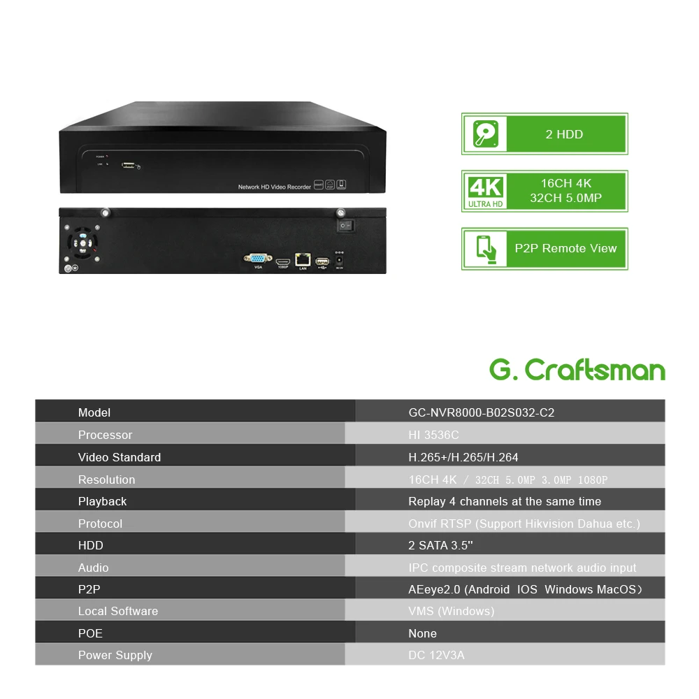 16CH 4K 32CH 5MP H.265 NVR Network Video Recorder 2 HDD 24/7 Recording Onvif 2.6 P2P For IP Camera