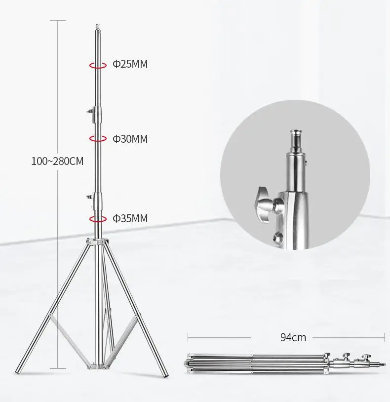 Best Quality 2.8M Heavy Duty Stainless Steel Light Stand for Studio Photo Video Flash Light Softbox Reflector fo