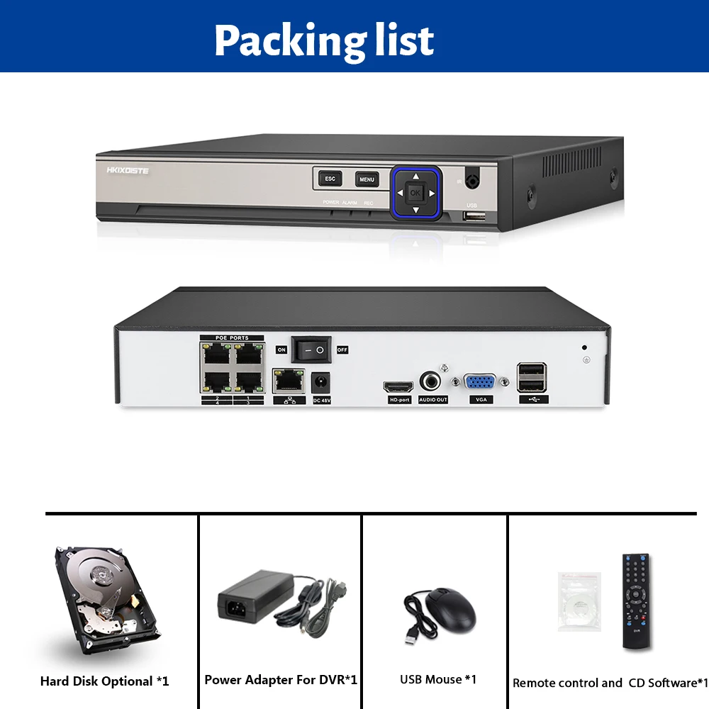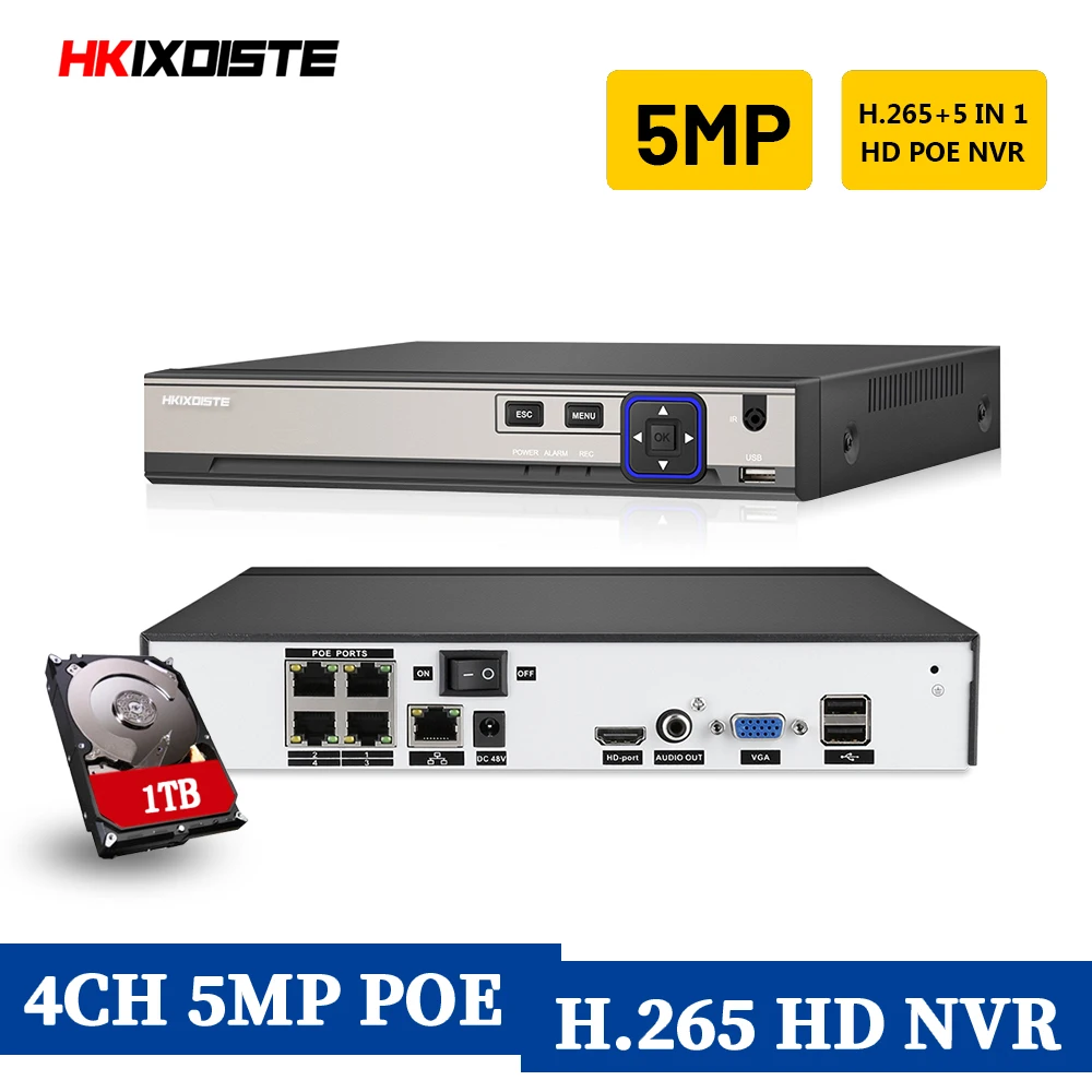 HOT Sale 4CH 4MP 5MP PoE NVR For POE IP Camera system Surveillance H.265 48V 802.3af ONVIF CCTV NVR XMEYE AP