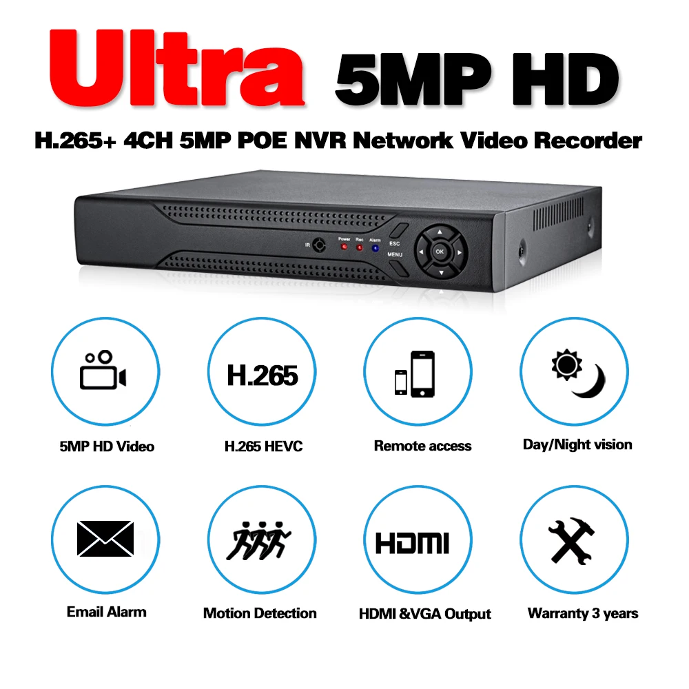 HIGH QUALITY H.265 4CH 8CH NVR POE 5MP 2MP Surveillance CCTV NVR 48V PoE For POE IP Camera P2P ONVIF 5MP Network